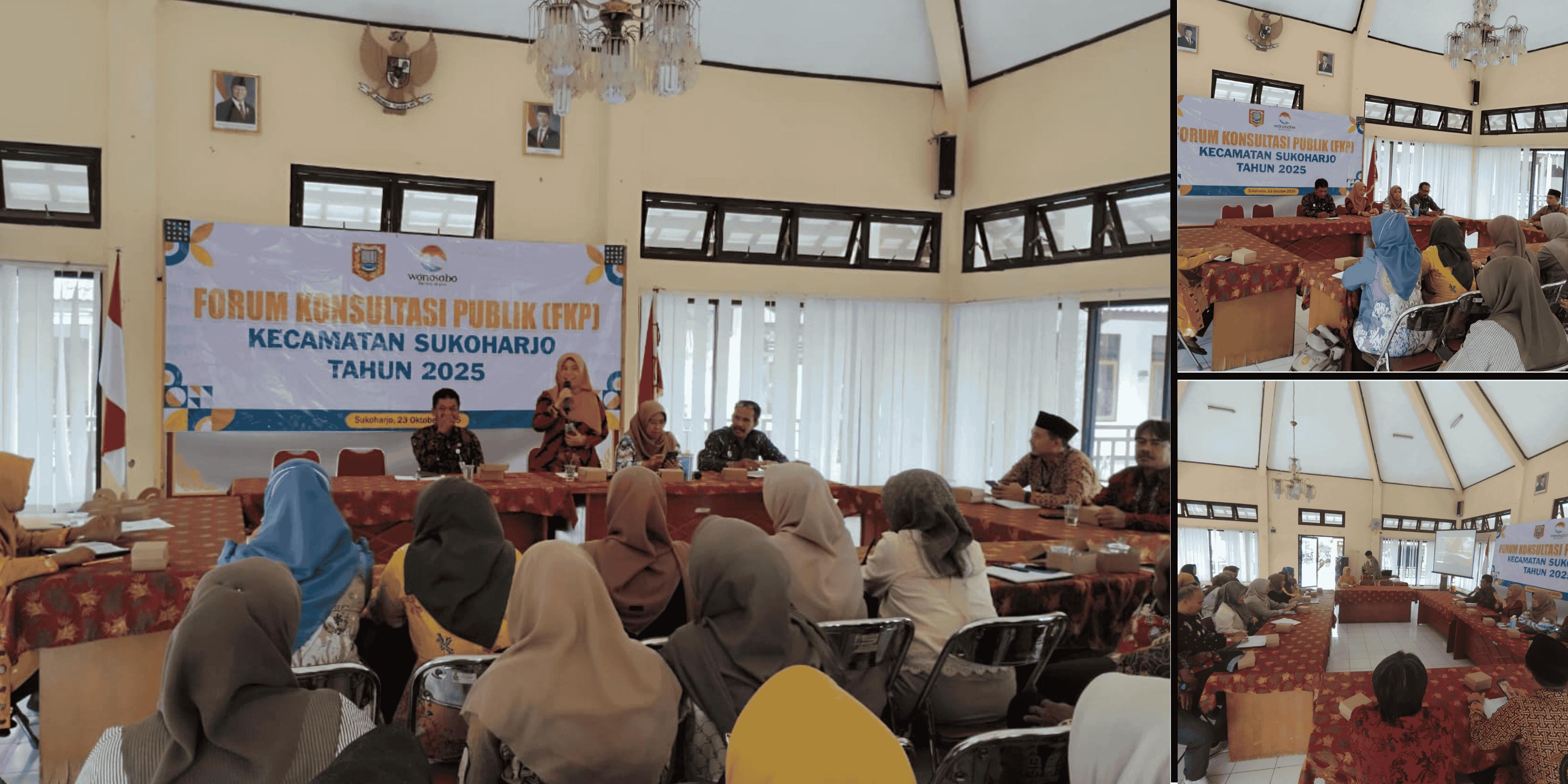 Kecamatan Sukoharjo menyelenggarakan kegiatan Forum Konsultasi Publik (FKP) Pelayanan Kecamatan Sukoharjo pada Kamis, 23 Oktober 2025 di Pendopo Sasana Karaharjan Kecamatan Sukoharjo. Acara diikuti oleh Puskesmas Sukoh...
